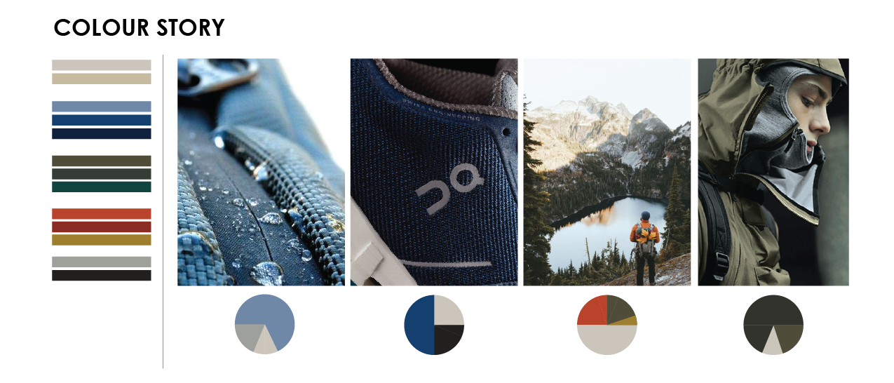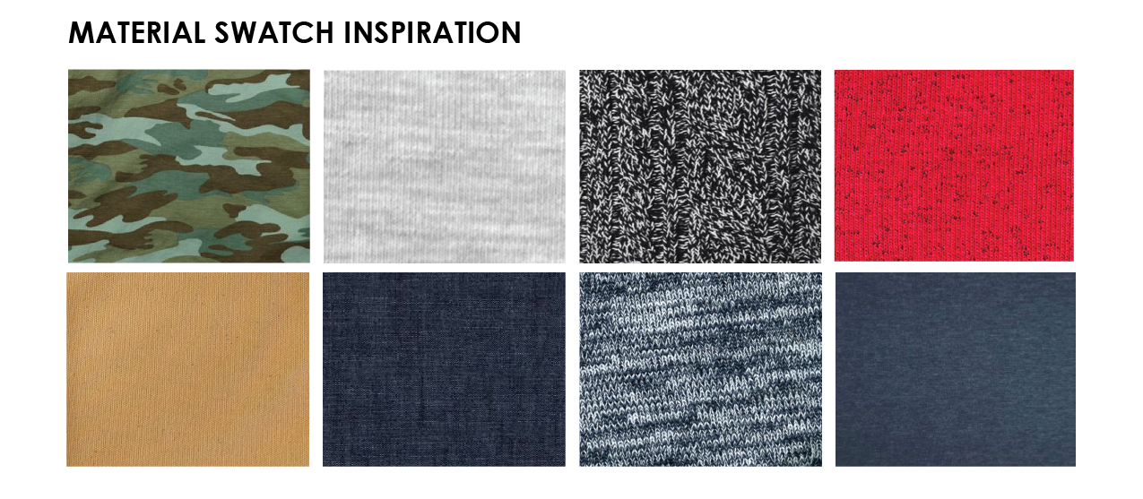 Create a collection inspired by woodsy, outdoor vibes that helps transition from Summer into fall. Lean into blue hues and grounded, warm neturals. Utilize denim and knit heathers as materials.